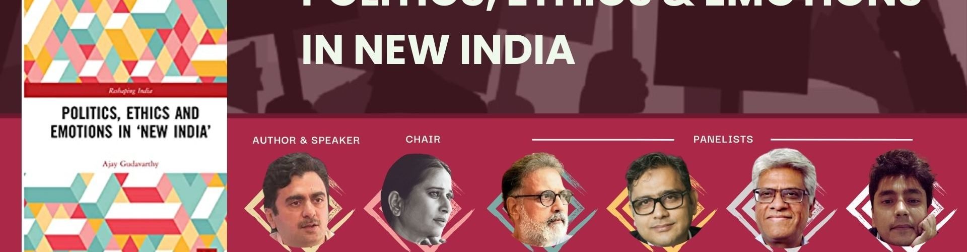Politics, Ethics and Emotions in New India by IMPRI 1698 1698 people viewed this event. Politics, Ethics, and Emotions in New India | Book Discussion | IMPRI #WebPolicyTalk #IMPRI Center for Human Dignity and Development (CHDD), IMPRI Impact and Policy Research Institute, New Delhi invites you to an IMPRI #WebPolicyTalk: A Book Discussion on Politics, Ethics, and Emotions in New India Details of the #WebPolicyTalk:Date: May 9, 2023Time: 6 – 8 p.m. ISTPlatforms: Zoom | Live at YouTube.com/@impriindia | Facebook Watch | Spotify | Google PodcastsZoom Registration Link: https://us02web.zoom.us/webinar/register/WN_Vl65nz9fTHyj3UJ6-mr0Uw Book Description How do emotions mobilise in politics? How do they frame ideologies? Broadly focusing on these questions, this book explains the role emotions play in Indian politics and the part they played in the aftermath of the 2019 general elections. Book Details: https://www.routledge.com/Politics-Ethics-and-Emotions-in-New-India/Gudavarthy/p/book/9781032070827# Program ExpertsChair: Ms Chinki Sinha, Author, Editor, Outlook IndiaAuthor and Speaker: Dr Ajay Gudavarthy, Associate Professor, Centre for Political Studies, Jawaharlal Nehru University, New DelhiSpecial Remarks: Mr Tushar Gandhi, President, Mahatma Gandhi FoundationPanelist: Dr Hilal Ahmed, Associate Professor, Centre for the Study of Developing Societies (CSDS), New DelhiProf Sukumar Muralidharan, Associate Professor and Associate Dean (Research), O.P. Jindal Global University, SonipatMr Shubham Sharma, Phd Scholar, University of Connecticut, USA Live Video YouTube: https://www.youtube.com/watch?v=Fswjm0vcgxQ HQ Video YouTube: https://youtu.be/19pDenDVPRA Spotify | Google Podcasts Also see IMPRI Book Discussion Playlist on YouTube Register for event To register for this event please visit the following URL: https://us02web.zoom.us/webinar/register/WN_Vl65nz9fTHyj3UJ6-mr0Uw → Date And Time 09/05/2023 @ 06:00 PM to 09/05/2023 @ 08:30 PM Location Online event Event Types Book Discussion Event Category Center for Human Dignity and Development (CHDD) Watch video Watch video x Share With Friends Facebook Twitter Linkedin Xing Pinterest Organizer IMPRI IMPRI, a startup research think tank, is a platform for pro-active, independent, non-partisan and policy-based research. It contributes to debates and deliberations for action-based solutions to a host of strategic issues. IMPRI is committed to democracy, mobilization and community building. Website More info